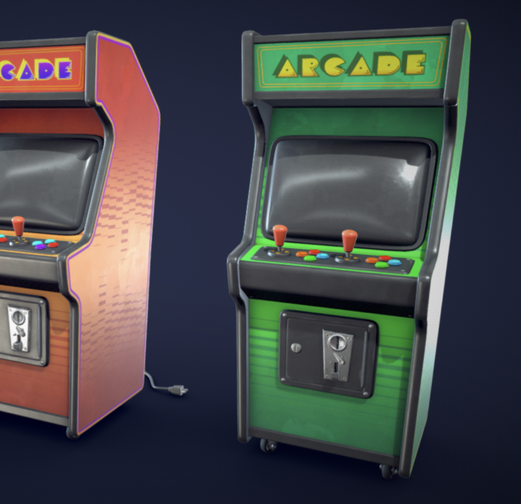 Máquina arcade vintage modelada en alta calidad, perfecta para escenas retro o de videojuegos.